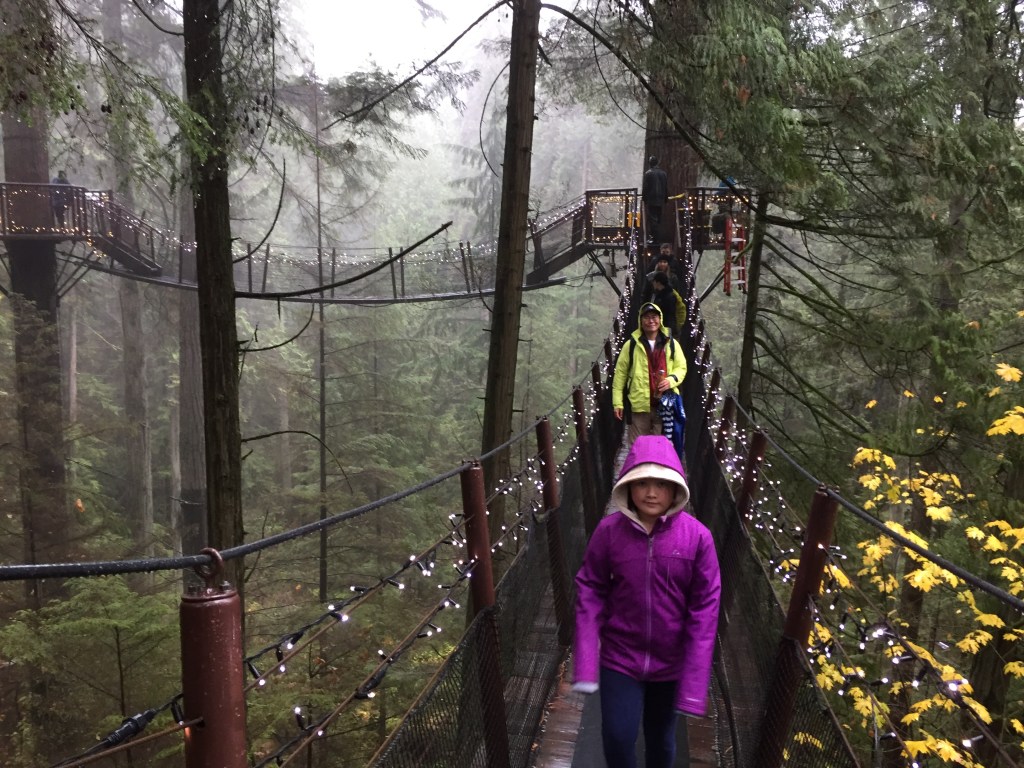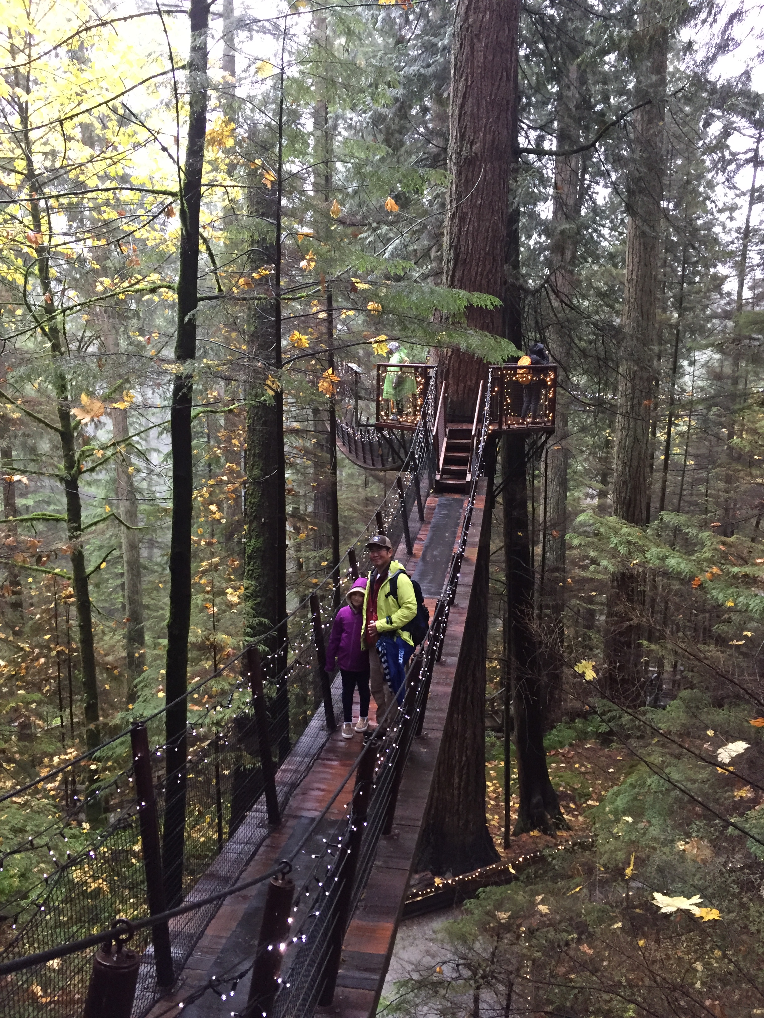 The first part you do is the bridge, spans across a deep, deep canyon. Way down below you can see the rushing Capilano River runs and bald eagles soaring around. It was magical though a bit nerve wracking when the bridge starts to sway!