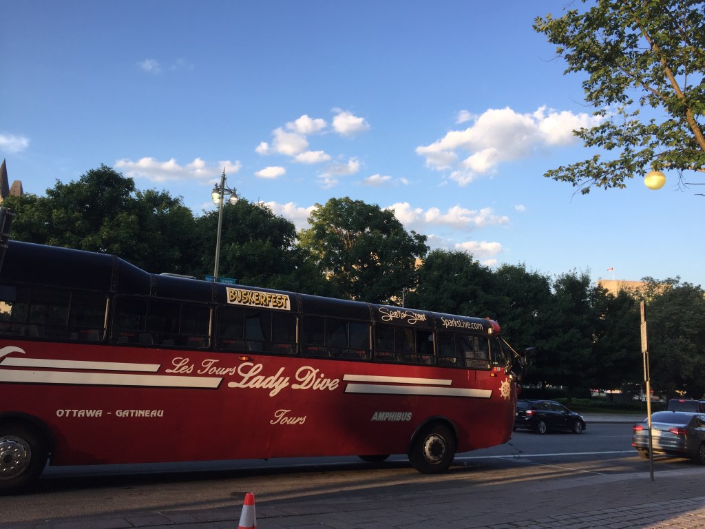 LadyDive starts the tour from its kiosk on Eglin Street, a stone’s throw from the House of Parliament, and takes you around downtown Ottawa and across into Gatineau (the Quebec side). The tour takes one hour, which is just long enough for it to not feel too long. Roughly half of the tour is on land, and half is on the water. The guide was excellent and very funny, explaining all the important landmarks of the city, like the Notre-Dame Cathedral and the National Gallery. We also got to see where a lot of embassies are located before heading into Jacques Cartier Park where the bus then drives right into the water.