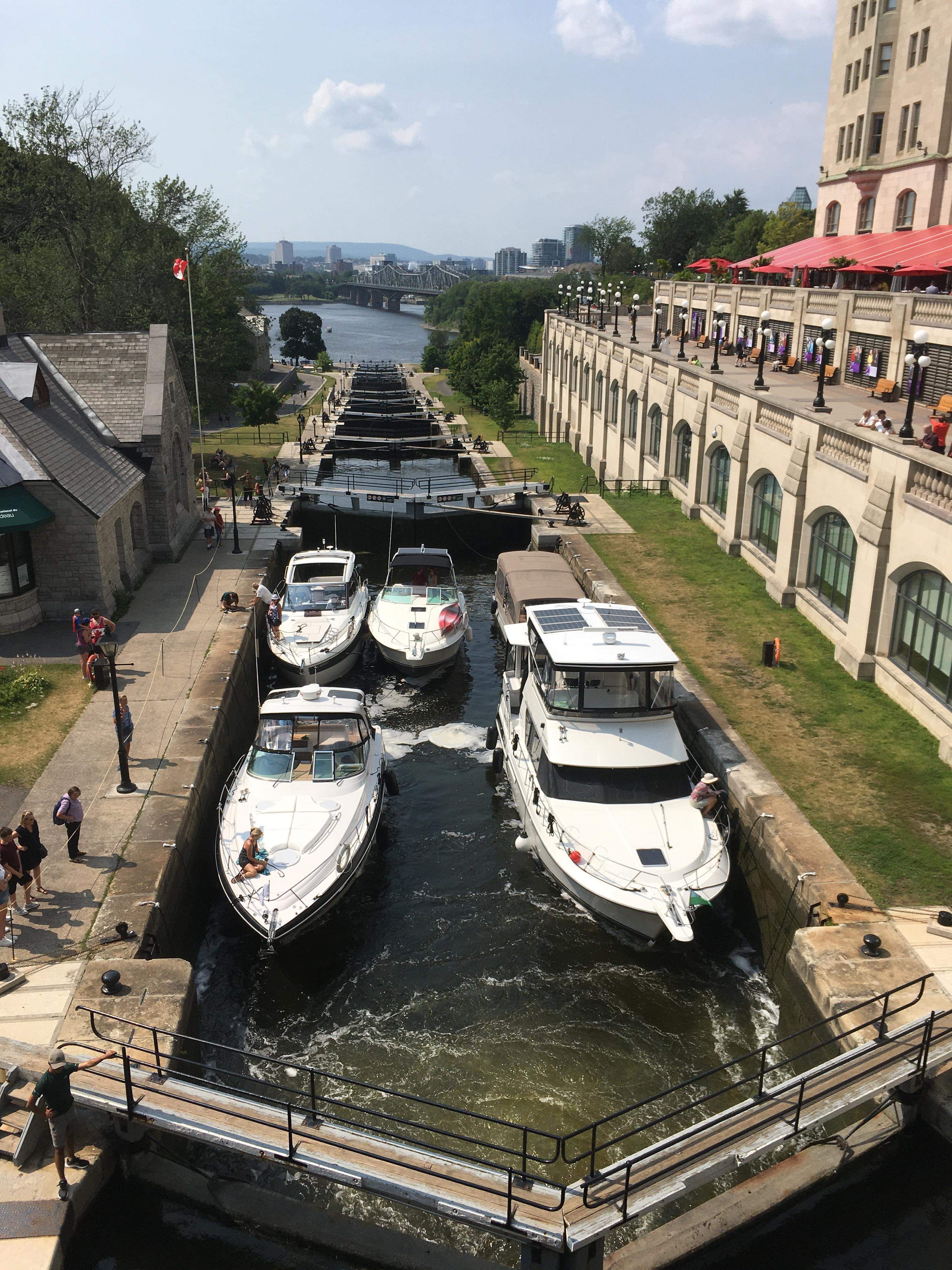 After the tour, we walked over to the canal to take a closer look at the boats coming up the locks. It really is quite incredible how they built this system, and that boat owners can just show up and hop their way up the locks to get to lakes further inland. It seems to take forever though for the locks to fill or empty in order to raise or lower the boats to the correct level. Might be why they all seemed to be jamming loud music, drinking champagne and dancing in bikinis, because you’ve got to entertain yourself while you wait for your turn to go!