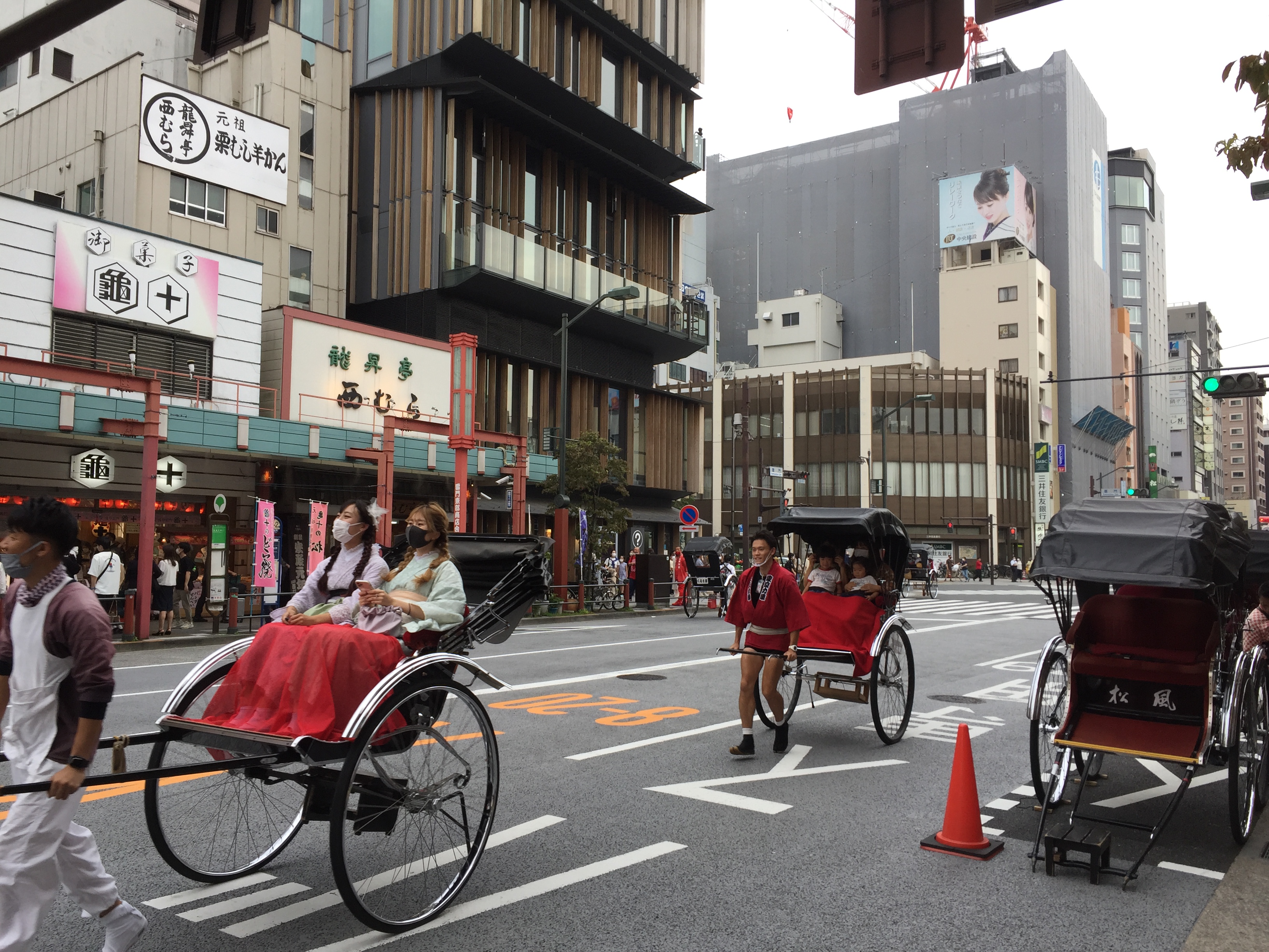 Just outside of the Kaminarimon gate you’ll no doubt notice the rickshaw boys pulling around customers. Apparently it is a popular thing to rent a kimono, get all dressed up, and take a rickshaw ride around the Asakusa area before going to the shrine. It’s not something I think I will try though!