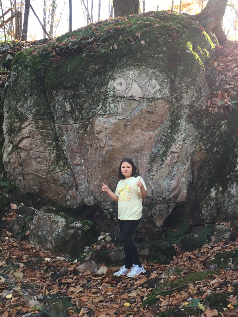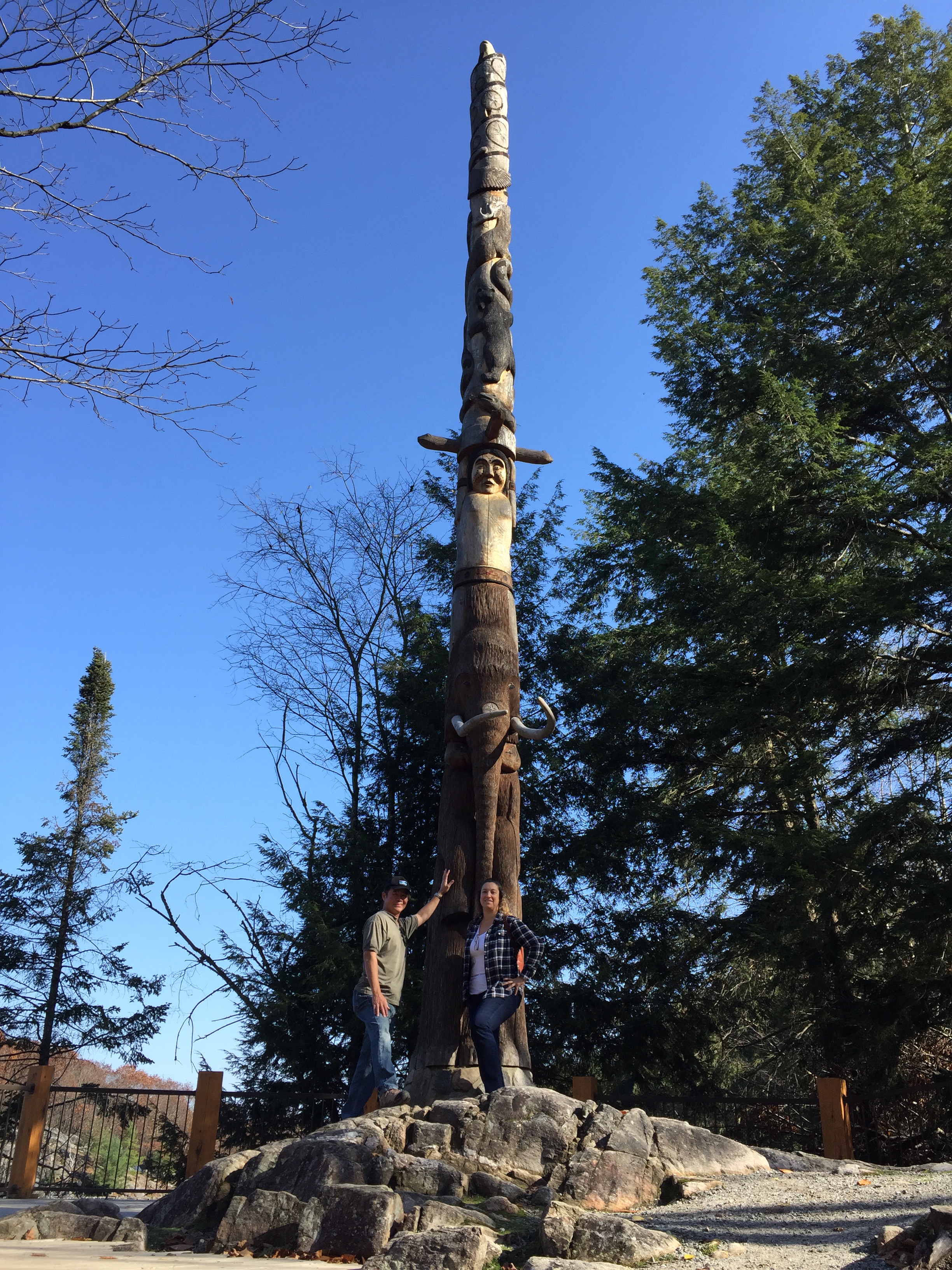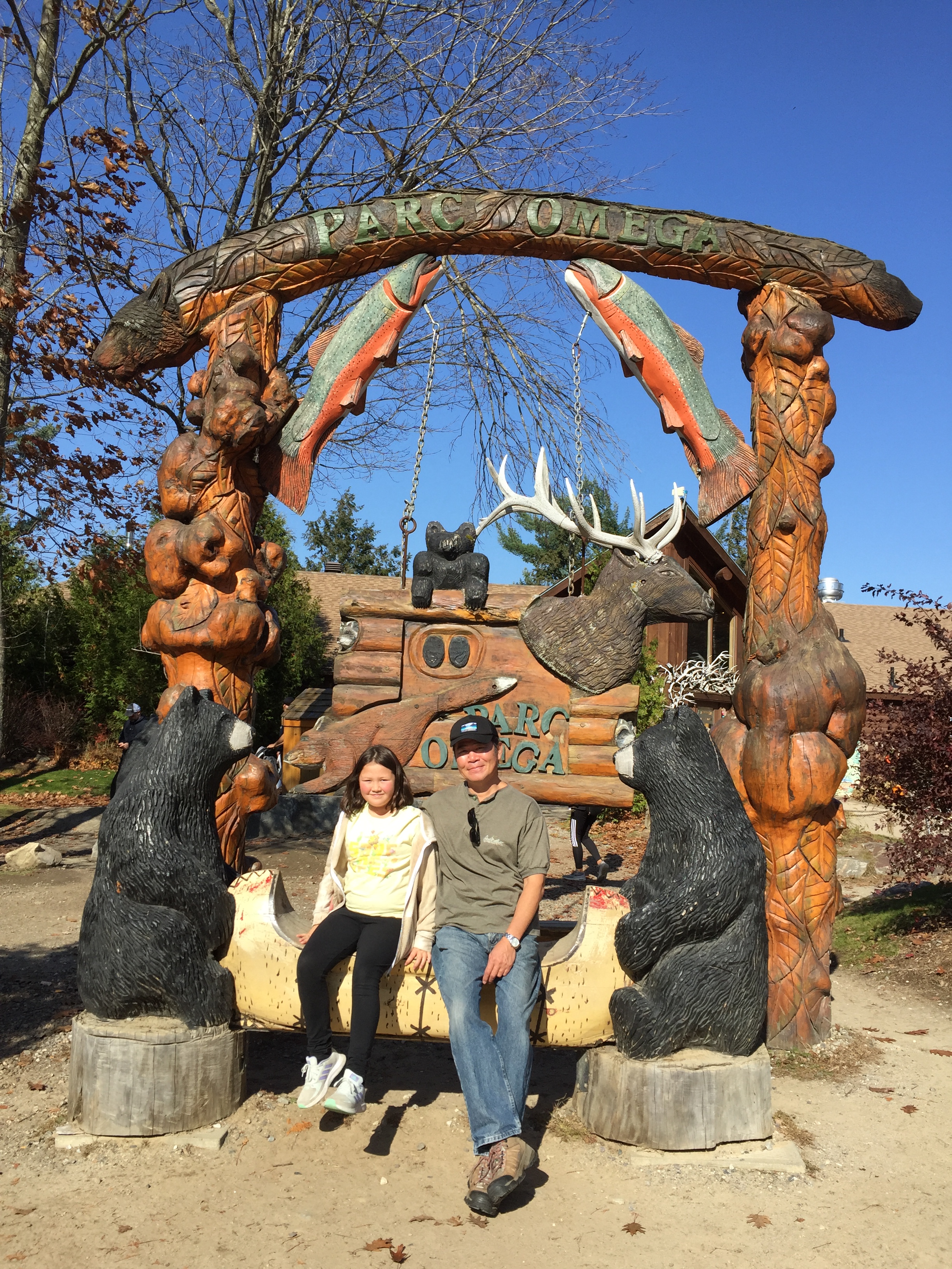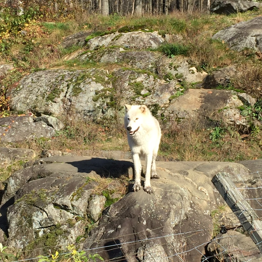 But it’s not all just driving. Parc Omega also has designated areas where you can get out of your car to take a hike, go to the bathroom, or have a picnic. If you’re bringing lunch with you, I highly recommend enjoying the picnic area at the Land of the First Nations rest area which has a lovely small lake that you can hike around and lots of tables. It’s a very pretty hike with lots of beautifully carved totem poles and information about the First Nations people of the area.