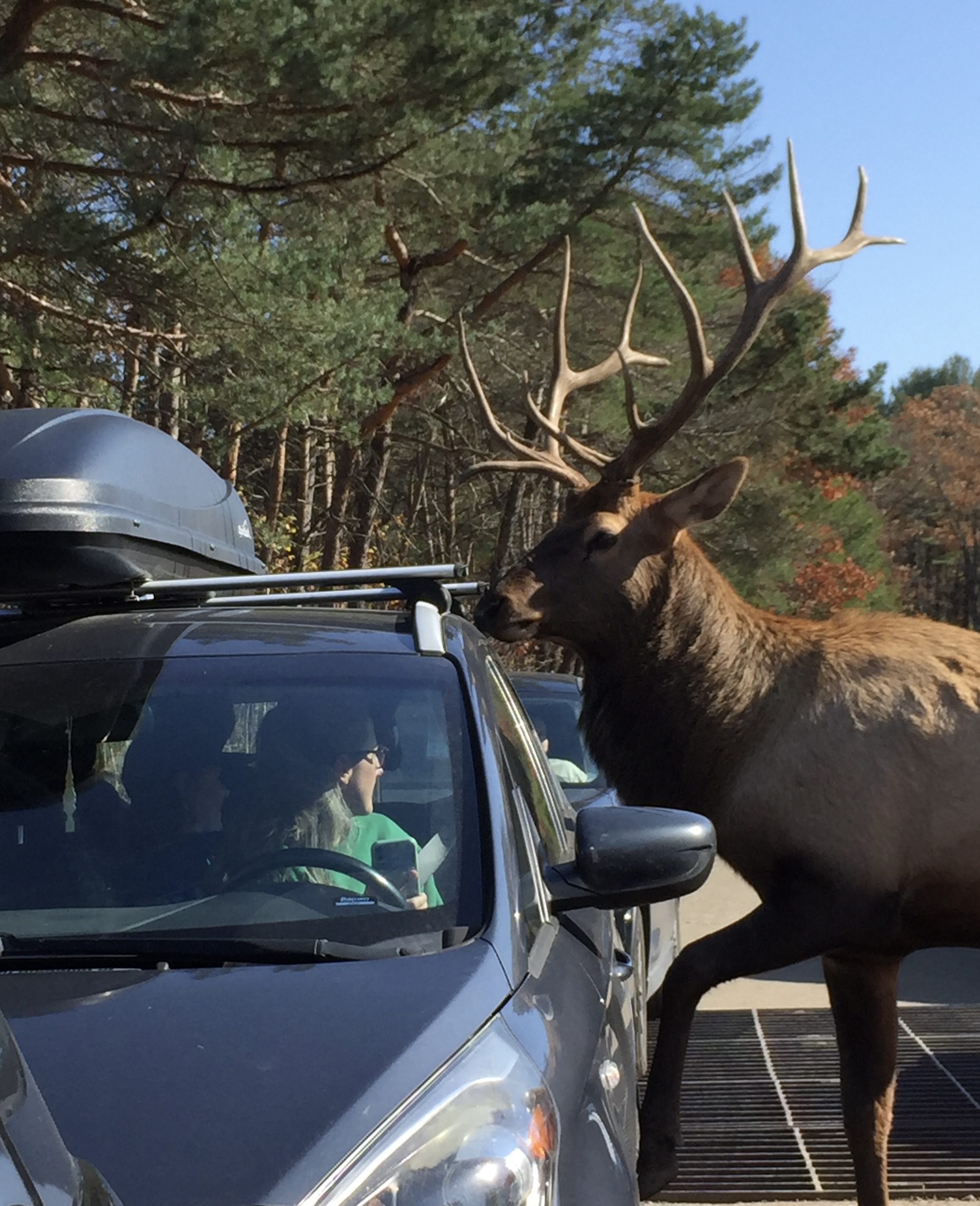 The animals are absolutely EVERYWHERE… standing in the middle of the road, lining the side of the road, blocking your car, lying down and napping in the road… I suppose that is the luxury of knowing you will never run out of food. The animal that you see the most is for sure the deer and the elk. They will approach you as soon as you drive up and aren’t afraid of humans. It’s carrot time, all the time! You can really see eye to eye during this experience.