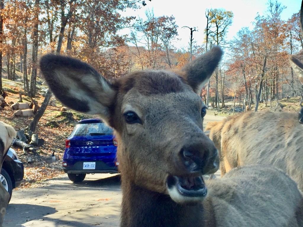 Parc Omega has been on my to-do list for quite some time, so on this autumn trip to Ottawa we came ready to visit this incredible place. Located in Quebec, about an hour from Ottawa, Parc Omega is essentially a Canadian Safari featuring the True North’s most iconic wildlife: deer, caribou, moose, elk, bison, mountain goats, wolves and more, all roaming around “in the wild”. If you live in the GTA, you are unlikely to ever see these creatures in the wild (unless you head north, of course), so Parc Omega is a great opportunity to get up, close and personal with them.