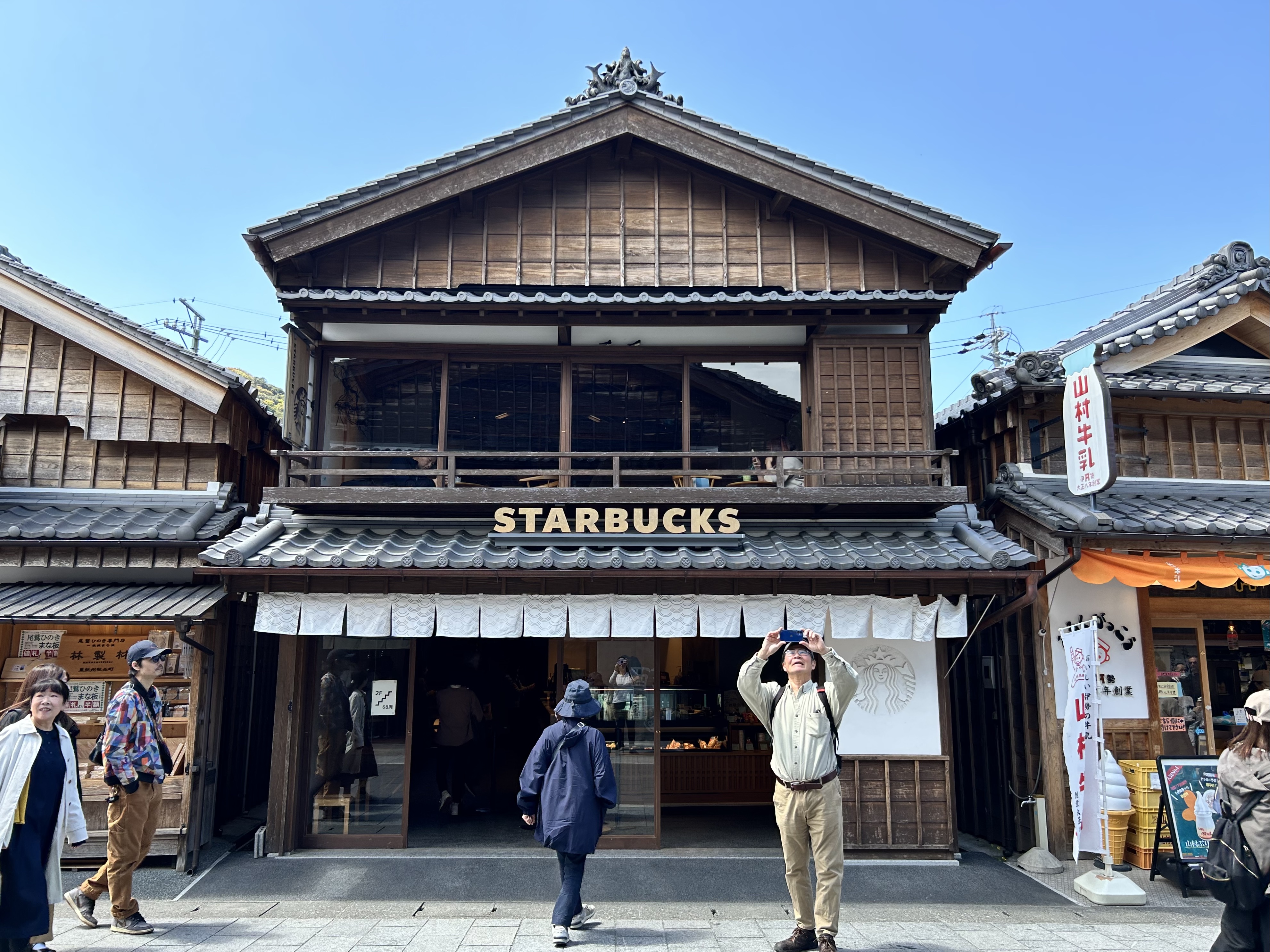 But first! Before getting to Ise Jingu itself we got very sidetracked wandering around in the shopping streets that lead up to the shrine, called Ohairi Machi. This busy pedestrian area is lined with traditionally-styled shops from the Edo period, with loads of food, drinks, snacks, and souvenirs, and a Starbucks!