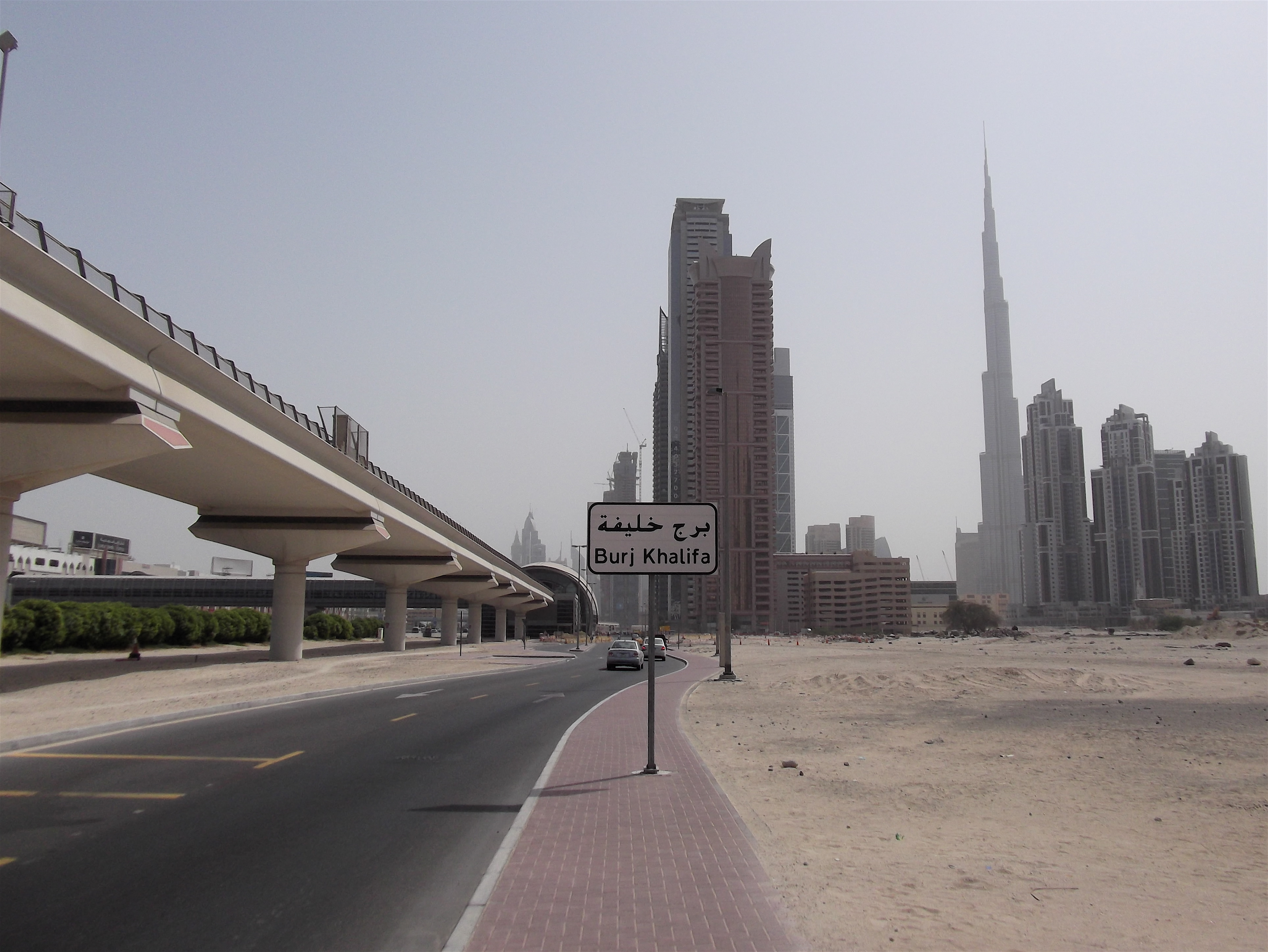 The tallest building in the world — the spindley one on the right — the Burj Khalifa